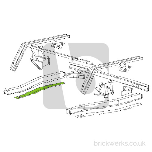 Fits rear right chassis member and fits between the trailing arm mount right up to the rear valance.