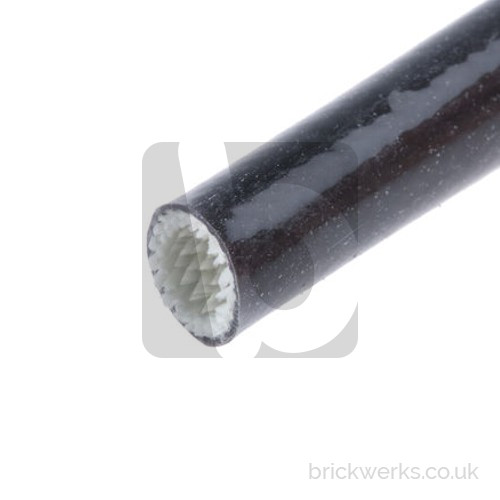 Black silicone rubber coated glass sleeve for protecting wiring, fuel lines etc from heat.