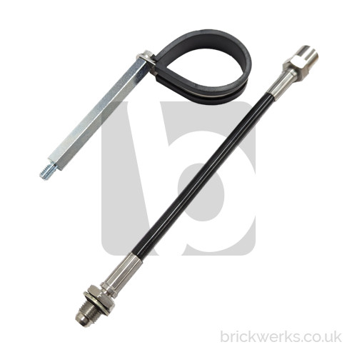 Stainless steel braided teflon hose with stainless fittings for adding a oil pressure sender to the 2.0l Aircooled engine, supplied with P-clip and stand off to stop the sender wobbling around.