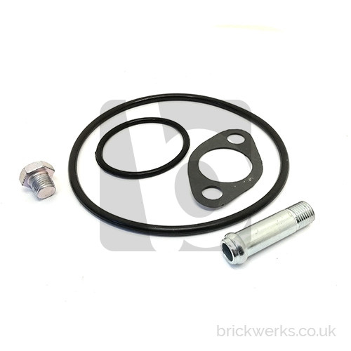 When fitting to the 1.9l engine without the oil cooler you screw in a sealing bung, when fitting to the 2.1l (or 1.9l Syncro) you use the spigot for the hose attachment to the oil cooler.